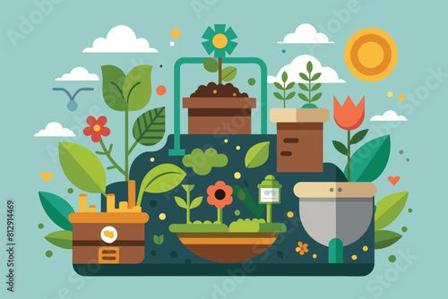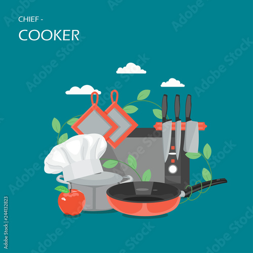 Výroba kávy vektorová plochá ilustrace. Turecký cezve hrnec, skleněný džbán, mlýnek, šálek horkého ztužujícího nápoje, croissant. Turecký kávovar zařízení a příslušenství plakát, banner.