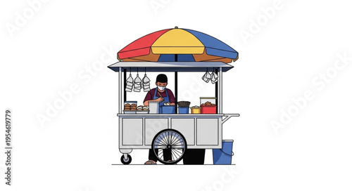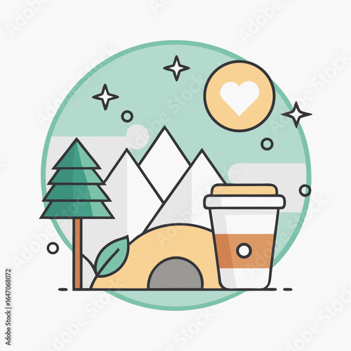 Výroba kávy vektorová plochá ilustrace. Turecký hrnec cezve, mlýnek, šálek horkého ztužujícího nápoje, konvice, taška na balení potravin flexibilní stojící pouzdro na zip. Plakát na kávu, transparent.