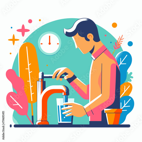 Vektorová ilustrace velkého jednorázového šálku kávy a vyčerpaných postav přemýšlejících o kávě a aktivním létání jako superman po pití kávy. Koncept výhod kávy pro webový banner, webová stránka