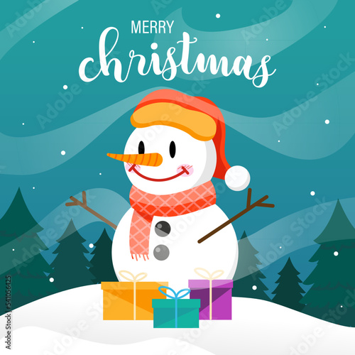 Studená zima vektorový plochý styl designu ilustrace. Sněhulák, brusle, chrániče sluchu, sáně, teplé rukavice a šátek, sněhová vločka. Zimní kompozice pro webový banner, webovou stránku atd.
