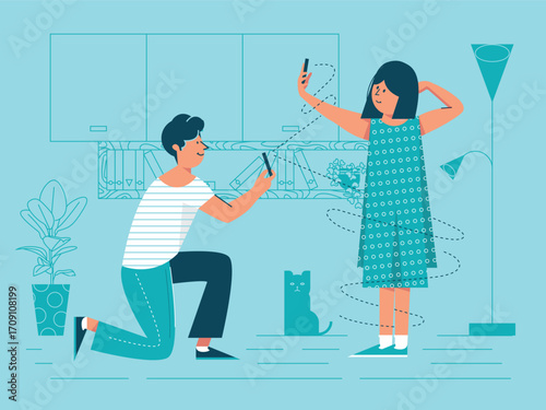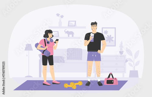 Kolegové mluví v nevytápěné kancelářské hale. Vektorové ilustrace muž a žena spolupracovník s přestávkou a snaží se udržet v teple