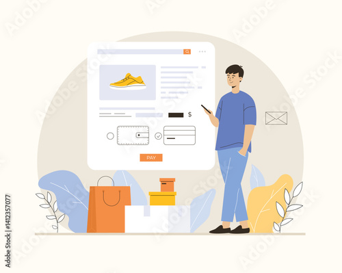 Žena čištění Nákupní centrum sklo vitrína s hadrem a sprej čistší, vektorové ploché ilustrace izolován na bílém pozadí. Profesionální komerční úklidové služby.