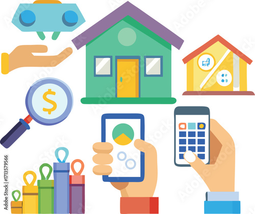 Komunikace se sousedy online, ploché vektorové ilustrace. Sousedský skupinový chat a online zasílání zpráv.