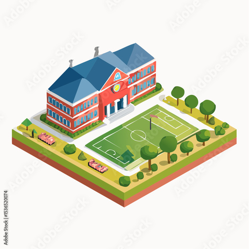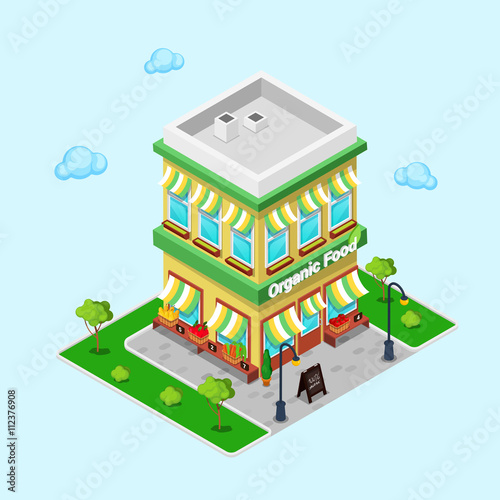 Společnost úvěr koncept vektor izometrické ilustrace. Infografika procesu podnikatelského úvěru s budováním společnosti, nápadem, budováním banky a symboly peněz, ikonami.