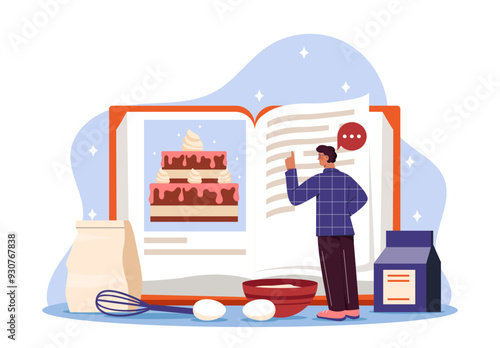 Vektorové ilustrace cukrář zdobení velký čokoládový a ovocný dort se dvěma vrstvami. Restaurace kuchyně, pekárna nebo cukrárna interiér, plochý styl designové prvky.