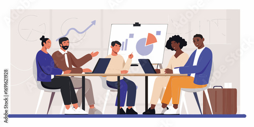 Konference vektorové ilustrace s žena mluvčí vystupující s prezentací řeči před malými lidmi publikum stojící se zády