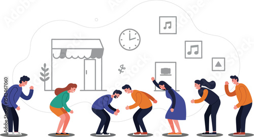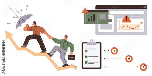 Muž v helmě běží s vyhrnutými plány, žena kreslí tužkou, městské staveniště s věžovým jeřábem, vektorové ilustrace. Koncept služeb stavebního inženýra pro webovou stránku atd.