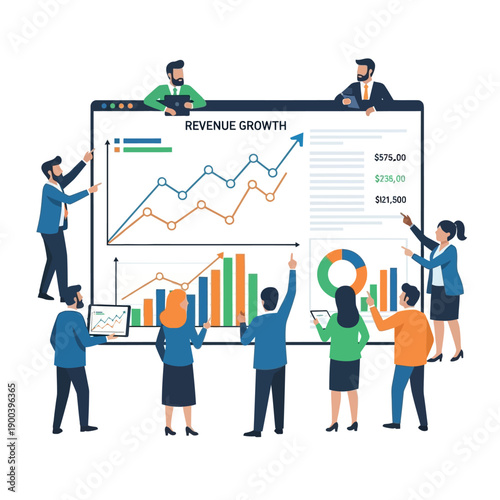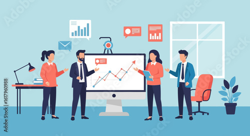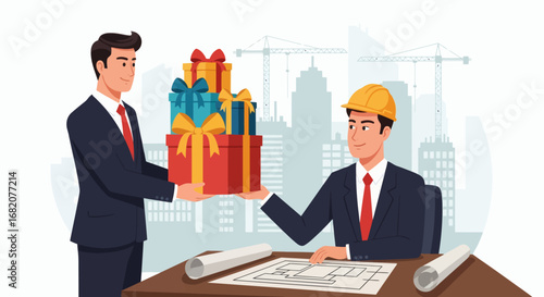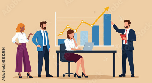 Stavební dělníci stojící na zvyšování sloupcový graf, ploché vektorové ilustrace. Stavitel, architekt, inženýr, mistr, vedoucí, mistr. Růst ve stavebnictví. Kariérní cesta domácího stavitele.
