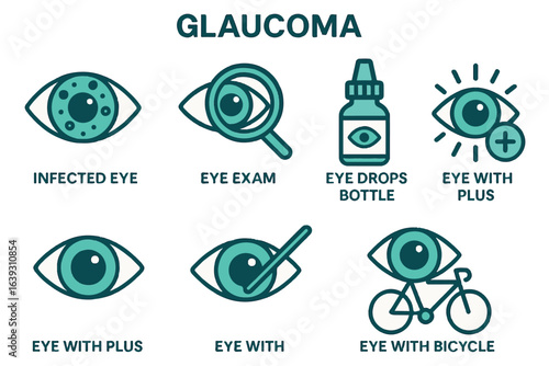 Kontaktní čočky, oční kapky a brýle, ploché vektorové ilustrace. Korekce zraku, ochrana očí. Oftalmologie, optometrie,
