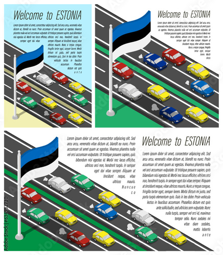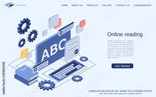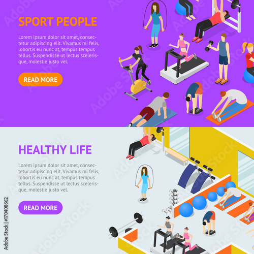 Dopravník vektorové ploché izometrické horizontální banner set. Dopravníkový systém, řízení výroby, konstrukční prvky koncepce balicí linky pro web a tištěné materiály.