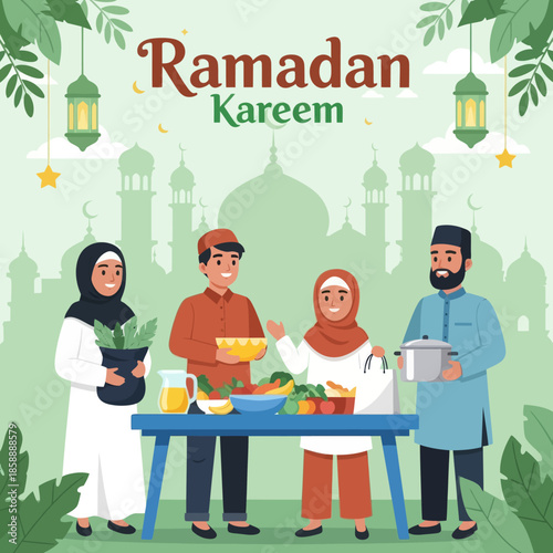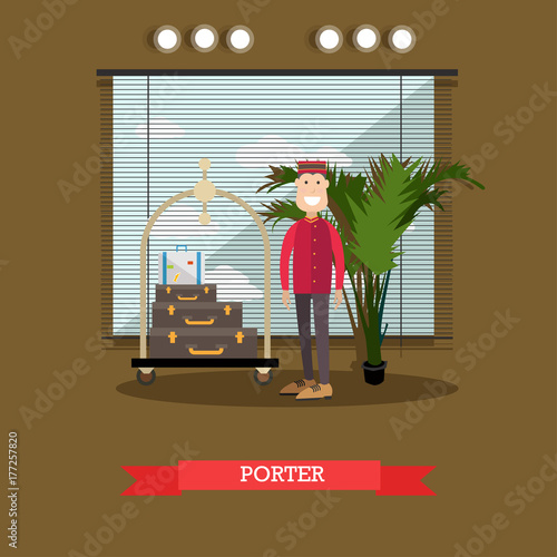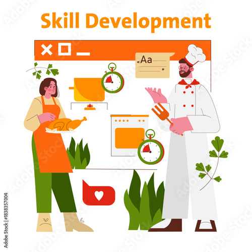 Vektorové ilustrace školní kuchař drží zásobník s jídlem. Plochý design.