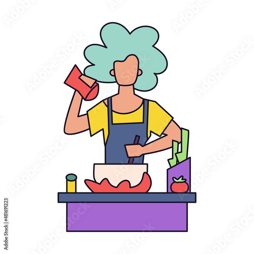Vaření online lekce pro dítě vektorové scény set. Děti se učí připravovat jídlo na internetu sledování vzdělávání webinář z domova ilustrace