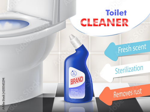 Cool Mint koupelna cleaner ad design šablony. Vektorové realistické ilustrace. Tekutý čisticí prostředek zabíjející bakterie reklamní plakát značky.
