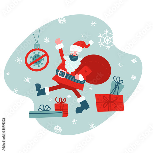 Lahvičky s vakcínou Covid-19, doktor drží deštník stříkačky, který ho chrání před koronovými viry řezanými papírem, vektorové ilustrace. Očkování. Prevence šíření koronaviru.