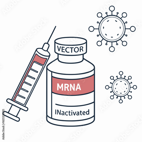 Injekční lahvička s vakcínou Covid-19, injekční stříkačka uvnitř štítu chránící před koronovými viry řezanými papírem, vektorové ilustrace. Očkování proti koronaviru. Imunizační kampaň. Bezpečná a účinná vakcína.