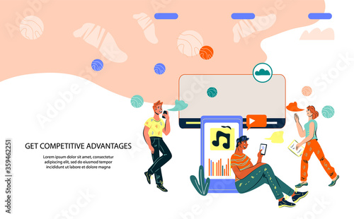 Mikro mužské a ženské postavy specialisté na krásu poskytující kosmetické ošetření obličeje pro ženskou tvář, vektorové ilustrace. Kosmetologie, koncept hloubkového čištění obličeje pro webový banner, webovou stránku atd