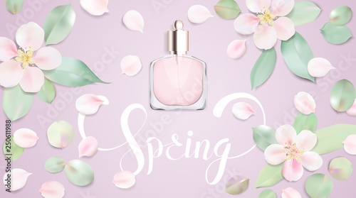 Prázdné kosmetické balení láhev trubka maketa, papír cut craft styl růžové květinové pozadí, vektorové ilustrace. Krása a péče o pleť kosmetický produkt inzeráty šablony.