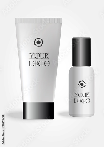 Kosmetika láhev maketa vektor. Ikona nádoby na kosmetický produkt. Krém, mýdlo nebo šampon balíček izolovaných na bílém pozadí
