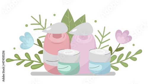 Kosmetika pro péči o nohy vektor. Krém pro péči o pleť během pedikúry, masáží, lázní a každodenní péče. Ženský kosmetický salon nebo obchod s produktem pro péči o nohy aroma. Reklamní koncept