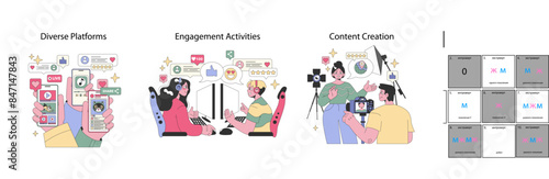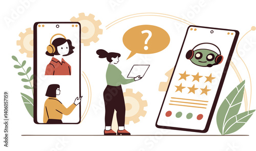 Kosmetické služby, vektorové ilustrace. Mužské a ženské postavy provádějící kosmetické a léčebné procedury pro ženský obličej a tělo ultrazvuk peeling obličeje, aplikace obličejové masky a krému