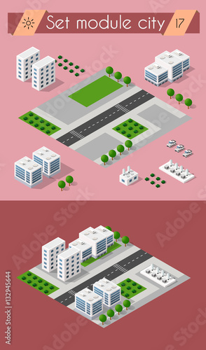 Chata konstrukce vektor plochý izometrický plakát, banner s nadací, rámování, střešní krytina, okna a dveře instalace a připraven k pohybu v přírodě domu designové prvky.