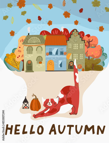 Vektorové ilustrace hasiče v ochranném oděvu a helmě hašení požáru ve venkovském domě. Hořící venkovský dům plochý designový prvek.