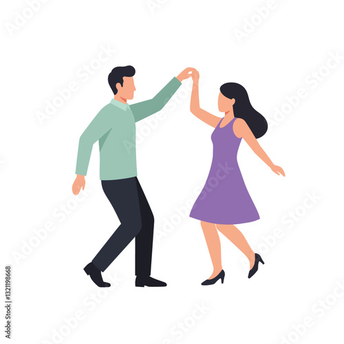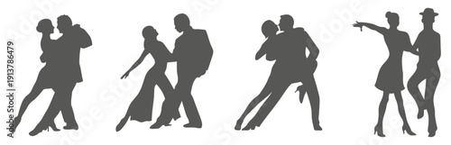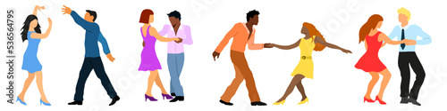 Pár tanec silueta izolovaných nastavit na bílém pozadí. Barevný pár elegantních lidí, kteří se stěhují do hudby vektorové ilustrace. Muž a žena tanečníci