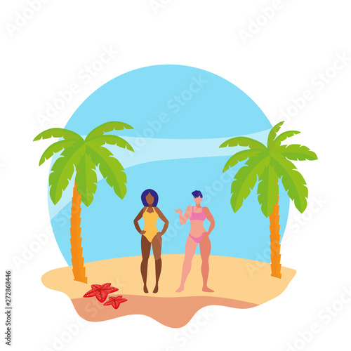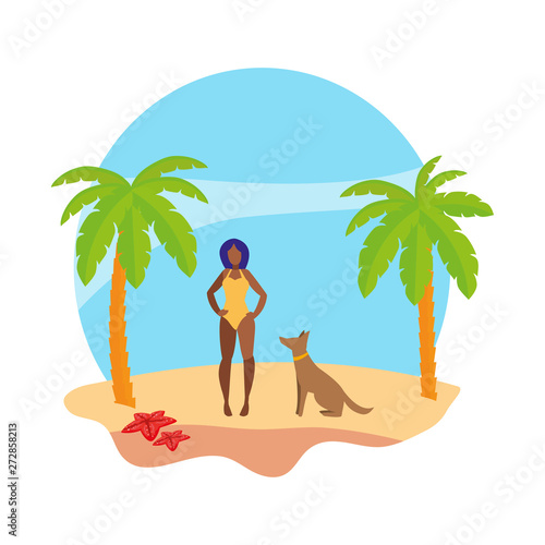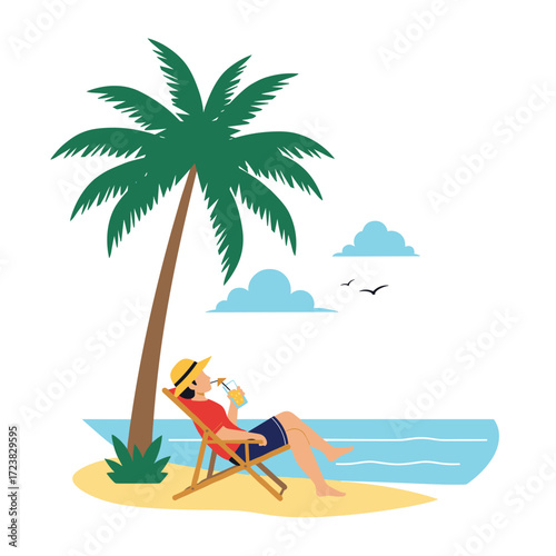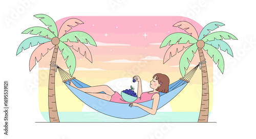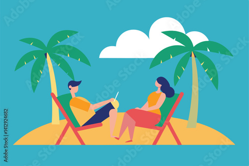 Pár v lásce houpající se v houpací síti na tropické pláži v exotickém letovisku vektorové ilustrace. Přítel zpívá romantickou píseň a hraje na kytaru pro přítelkyni. Chodit s někým, líbánky nebo dovolená koncept