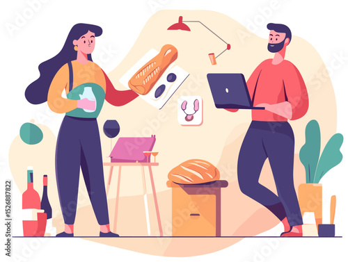 Pár v obchodě výběru boty vektorové ilustrace. Muž a žena v maloobchodě mall nákup obuvi. Široký sortiment na polici. Mladý ženatý rodinný pár dělá nakupování společně