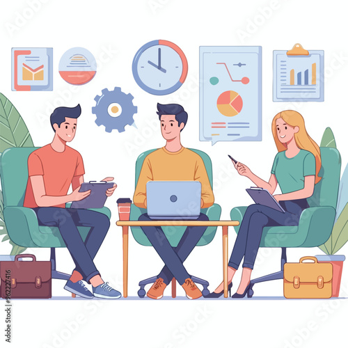 Rodinný pár ležící na posteli pomocí mobilního telefonu a přenosného počítače, plochý vektor pohled shora ilustrace. Interiér ložnice, mladý muž a žena s moderními gadgety, kočka ležící na posteli.