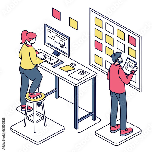 Muž a žena hrají fotbal stolní arkádová hra, ploché vektorové izometrické ilustrace. Herní klub, pokoj, zóna atrakce, zábavné aktivity, Zábava. Arkádové hry.