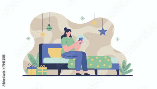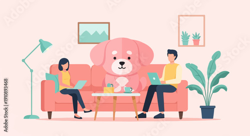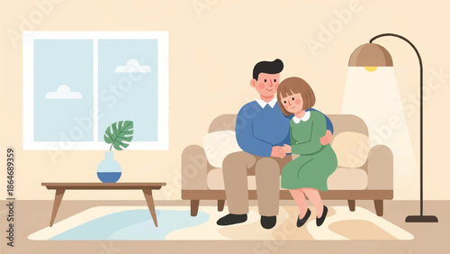 Vektorové ilustrace mladého páru mluví k sobě, zatímco sedí na pohovce v obývacím pokoji. Plochý styl designu.