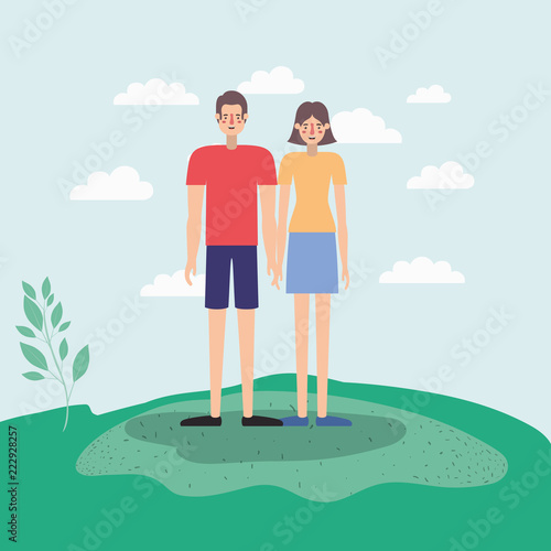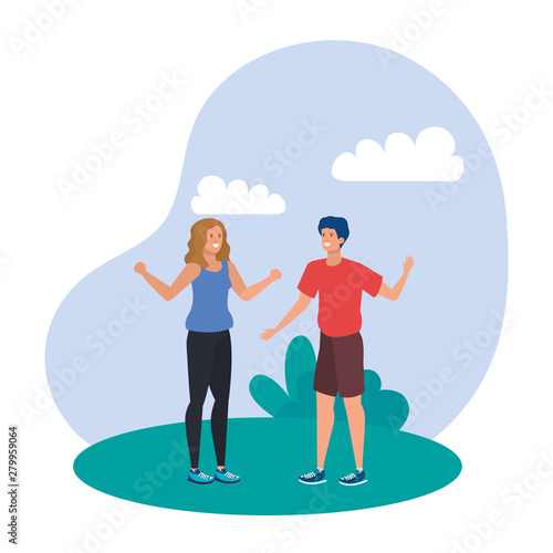 Šťastný pár s protetikou nohou a paží, který si užívá plného života při společné chůzi, ploché vektorové ilustrace. Životní styl osob se zdravotním postižením, vztah se zdravotním postižením, romantické rande.