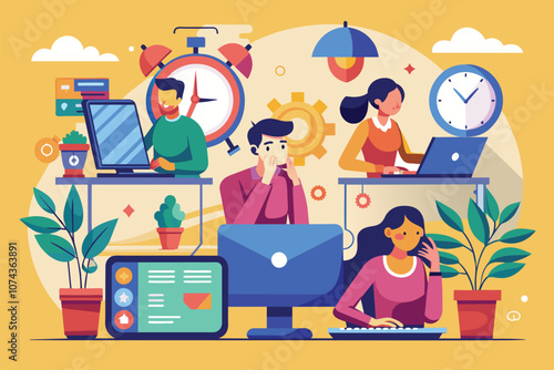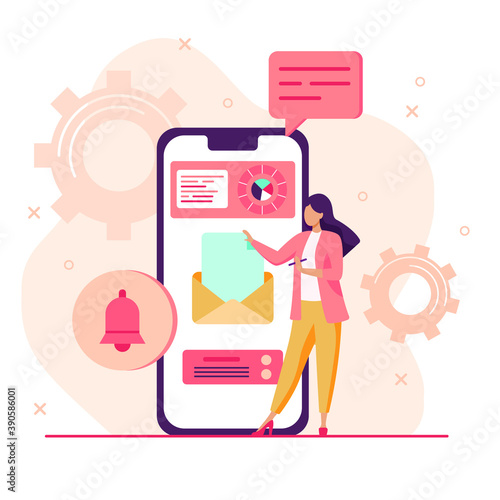 Doručovací společnost kurýři, mužské a ženské postavy dodávající rychlé občerstvení, potraviny, dárky, květiny pro zákazníky, ploché vektorové ilustrace. Online objednávání a doručování.