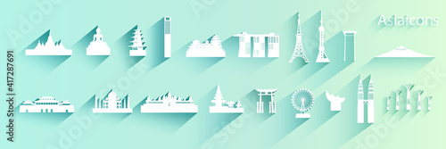 Světově proslulé památky, kufr s cestovním lístkem a QR kódem vakcíny COVID-19, vektorové ilustrace ve stylu papírového umění. Cestovní pravidla a omezení Covid-19, požadavky na karanténu.