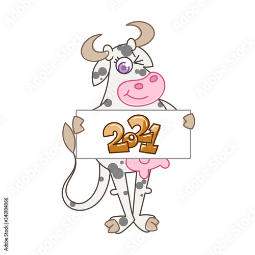 Kráva drží mléko tetra pack box vektor. Legrační šťastný úsměv farma zvíře kreslený maskot charakter s čerstvým mléčným nápojem izolovaných na bílém pozadí