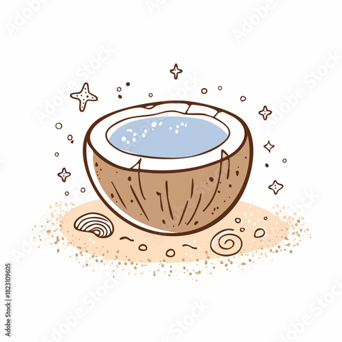 Popraskané kokos v mléce realistické vektorové ikony. Designový prvek izolovaných na bílém pozadí