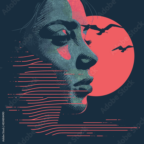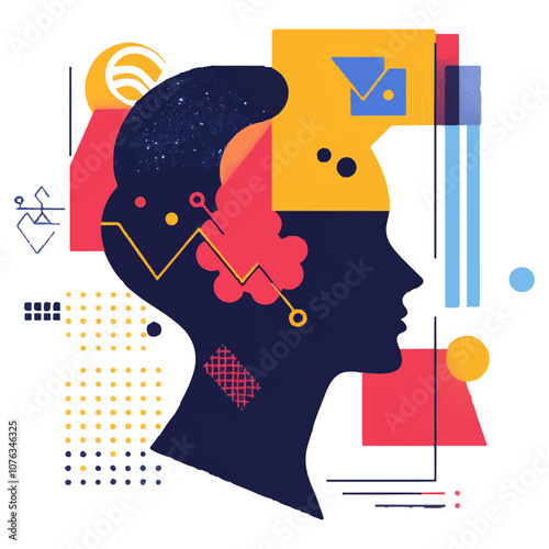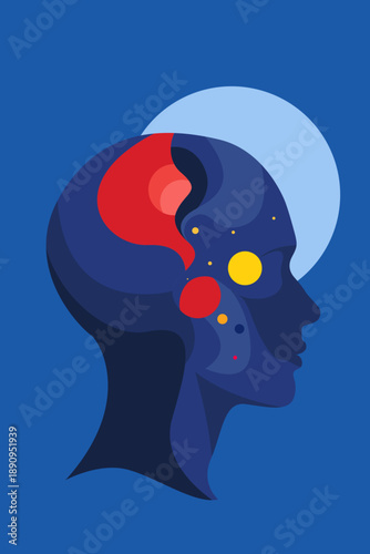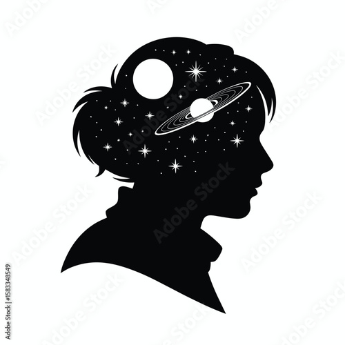 Silueta lidské hlavy s raketou, planetami, mraky, vektorové ilustrace v papírovém uměleckém stylu. Kreativní koncept mysli pro webový banner, webovou stránku, plakát atd.