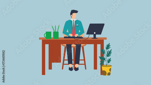 Vektorové ilustrace tvůrčího pracovníka muže ve své kanceláři. Creator concept plochý styl designový prvek.