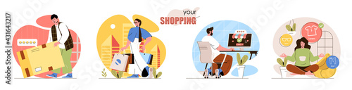 Crime landing Page design, website banner template set, flat vector illustration. Bankovní loupež, zlodějka s taškou plnou peněz. Agent vyšetřující místo činu, sbírající forenzní důkazy.