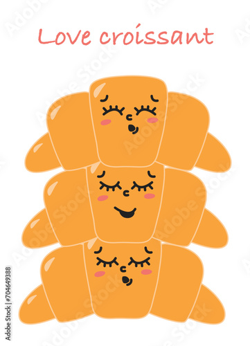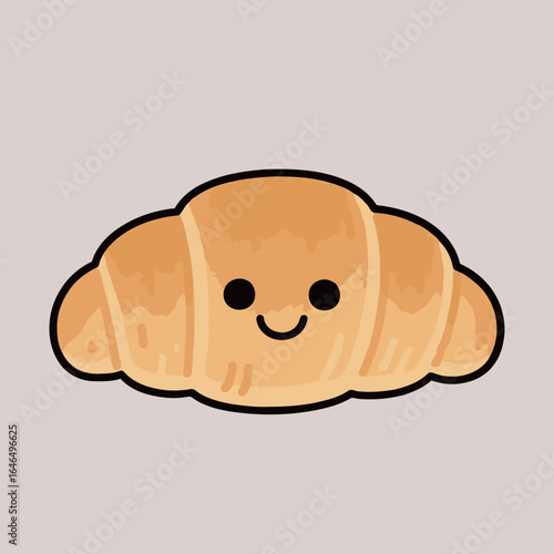 Croissant kreslený vektorové legrační charakter roztomilý roll ilustrace. Happy bakery food face icon izolovaných na bílém pozadí