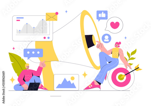 Velký záchranný kruh a drobní lidé odpočívající na luxusní jachtě, osobní parník. Vektorová ilustrace šťastného páru, který pije šampaňské a opaluje se na lehátku. Sea travel, cruise time concept
