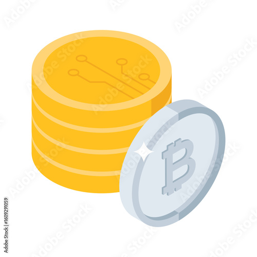 Kryptoměna hromada vektorové ikony. Dolar, bitcoin, litecoin, ethereum stack izolovaných na bílém pozadí