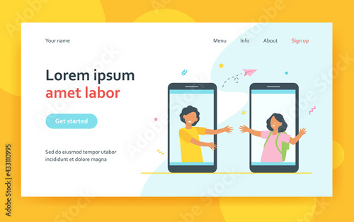 Šablona webových stránek pro přenos vstupní stránky kryptoměny. Vektorová izometrická ilustrace člověka, který posílá bitcoiny jinému muži prostřednictvím smartphonu. Koncept transakce digitální měny Bitcoin.