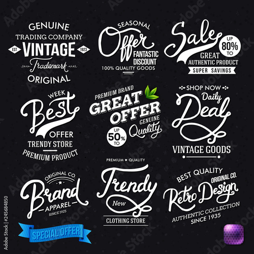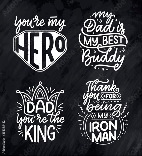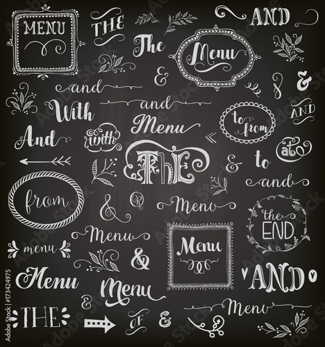 Kuchyně citáty a výroky ruční písmo typografie, vektorové ilustrace. Vintage etikety na potraviny, emblémy s inspirativními frázemi o vaření na černém pozadí.