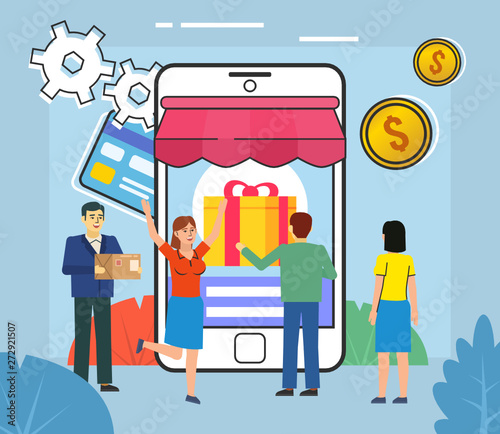 Vektorová ilustrace podnikatelů, kteří mění americké dolary na eura a naopak pomocí smartphonu. Koncept služby mobilní směnárny pro webový banner, webovou stránku atd.