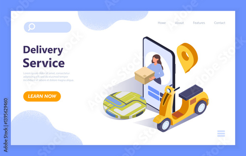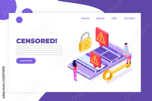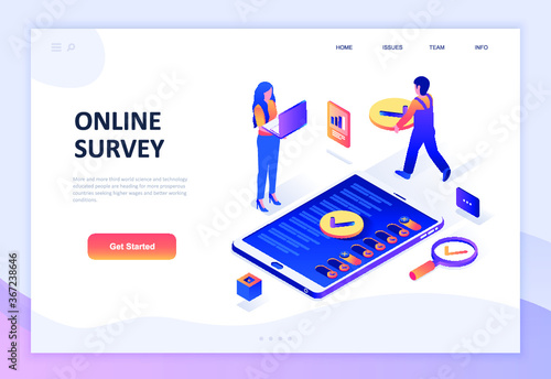 Customer engagement landing page website template. Vektorový izometrický obchod, červený magnet přitahující následovníky lidí smajlíkem, hvězdou, palcem nahoru a srdcem jako symboly ocenění sociálních sítí.
