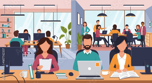 Zákazník čeká na své auto v automechanik obchodě. Autoservis cartoon vektorové ilustrace. Mechanik opravuje rozbité auto a vyměňuje pneumatiky a olej. Stanice údržby vozidla.
