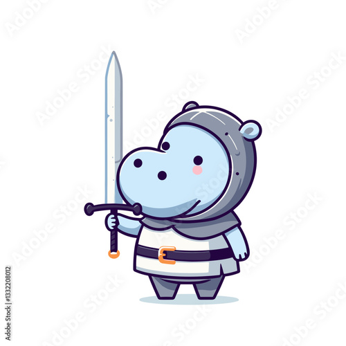 Roztomilý rytíř vektor. Kreslený středověký bojovník charakter v brnění helmu s shied a meč útok ikonu izolovaných na bílém pozadí