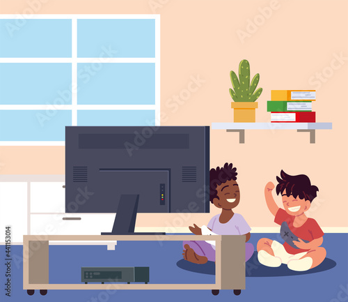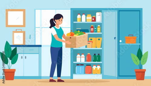 Roztomilý chlapec dítě uvedení složené oblečení v šatníku, pomáhá rodičům s úklidem domu, ploché vektorové ilustrace. Děti domácí práce a odpovědnost.